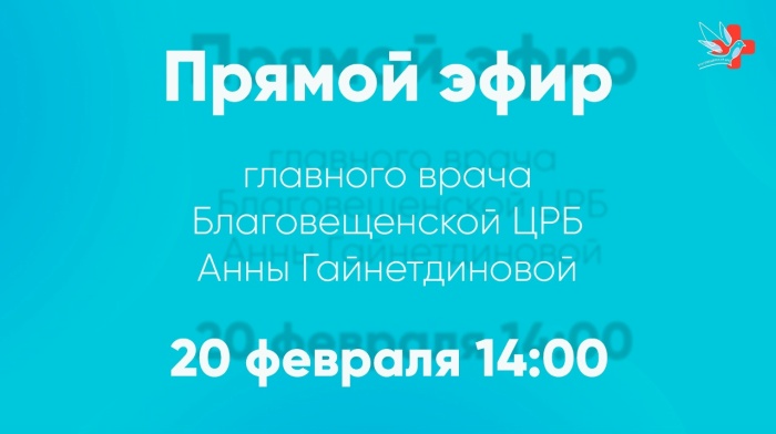 20 февраля в 14:00 состоится прямой эфир с главным врачом Благовещенской ЦРБ Анной Николаевной Гайнетдиновой.