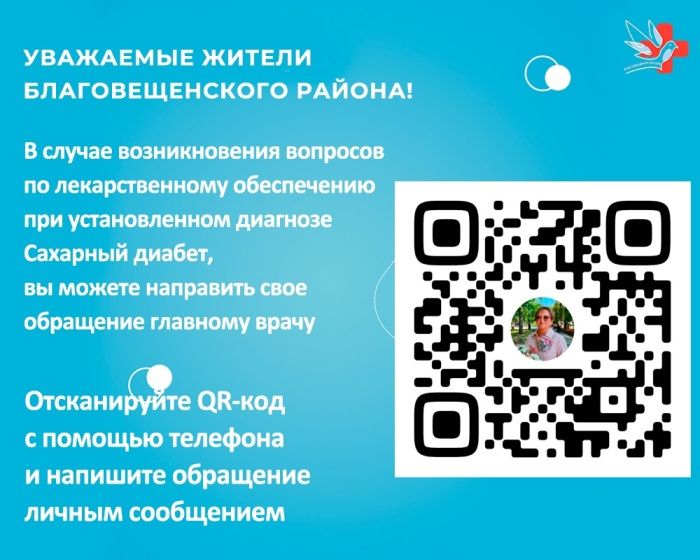 Уважаемые жители Благовещенского района!В случае возникновения вопросов по лекарственному обеспечению при установленном диагнозе Сахарный диабет, вы можете направить свое обращение личным сообщением главному врачу.